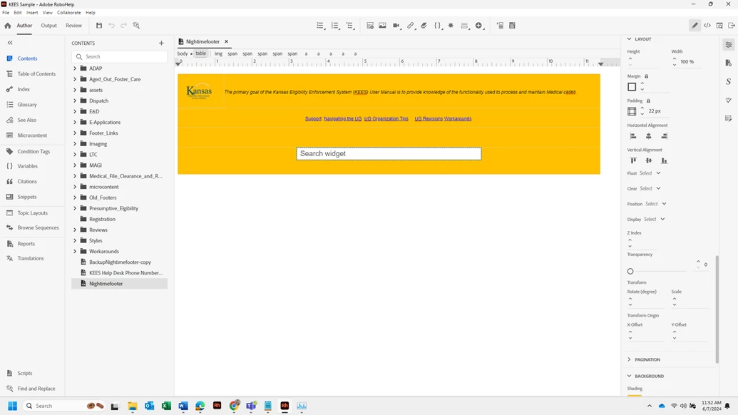 Footer issues in Robohelp 2022.3.93 (Topic Layouts)