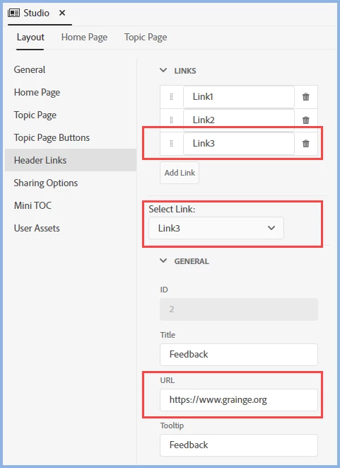 I'm trying to edit the header hyperlinks in a frameless SKIN: