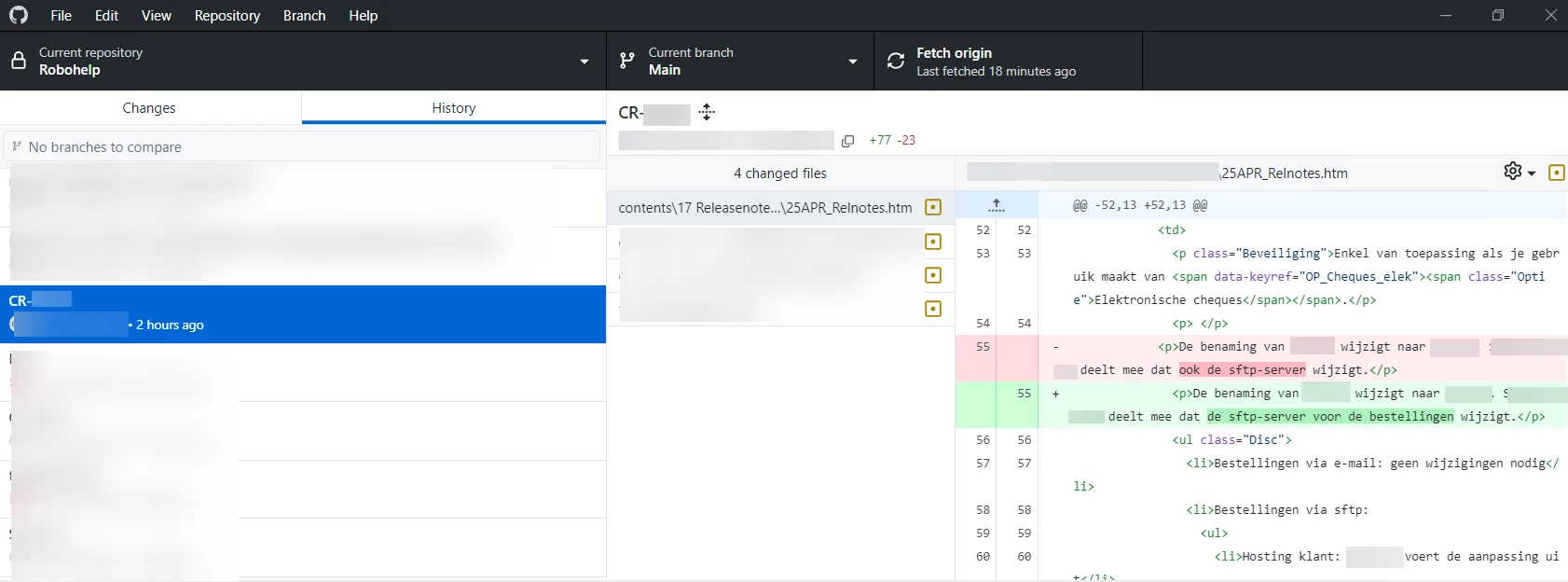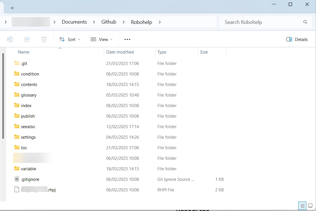 Do not use the Robohelp Git plug-in, that works about as well as the Robohelp translation feature.