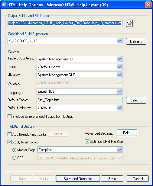 - Configure Properties (Right-click the book file in RH and click Properties).