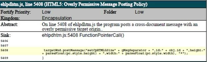 We have a customer's security team objecting to the files because of an issue with their "Overly Permissive Message Posting Policy." An example: