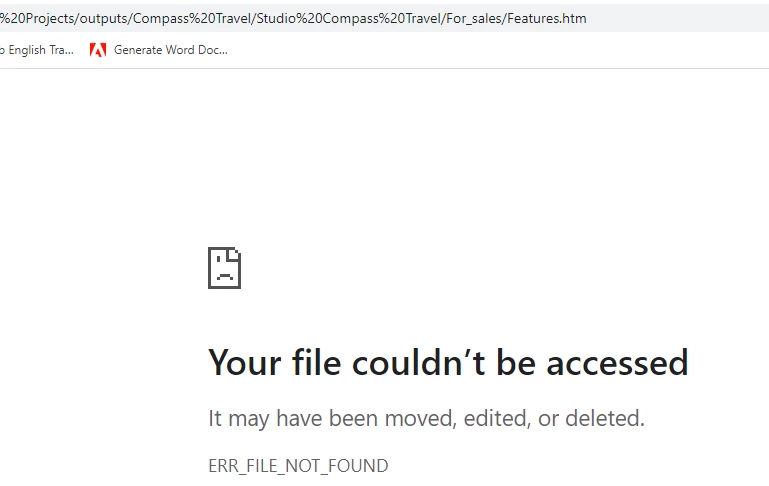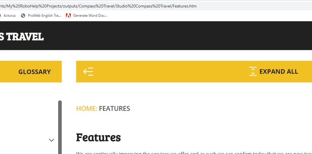 In case I'm totally missing something, when you have a frameless output and you have what Adobe calls Header links (Features, About, Feedback, by default). I was having problems making these work and wondered if you needed some special type of URL for it. It just sticks the URL you enter (for example About.htm) on the end of the current URL you are in... and if you are in a folder, where this page isn't stored, then, you get page not found.