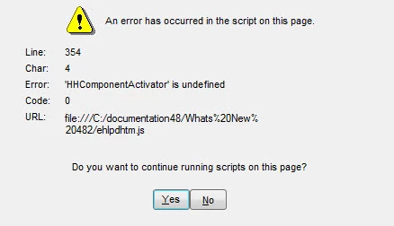 I have several existing RoboHelp HTML projects that I keep updated. Starting this week I have started receiving an error: 'HHComponentActivator' is undefined when I attempt to Preview Topic. The topic previews fine when I choose Yes to continue running scripts on this page, but am puzzled why all of a sudden I have started receiving this error. Could a Window update cause this to occur? That is the only thing I can think of that has changed in the past week since I started receiving error. If Preview Topic and generating .chm files works fine, should I be concerned about this error?