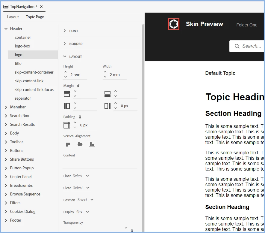 Hiding the logo in the TopNavigation frameless template RH2022