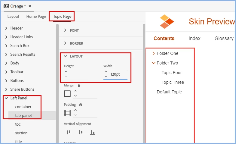 In my frameless output, I need the left panel to be more narrow. I have tried going to the frameless theme> Topic Page > Left Panel > Container and adjusting the width there, but it has no effect.
