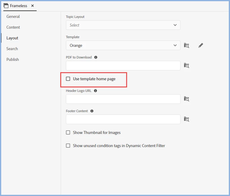 I'm customizing the frameless studio skin and have tried to figure out how to skip this front page and have the project open to a topic page or, even better, remove the tiles on this page and insert a topic. I don't want to use the tiles.