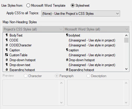 When I generate the printed output, on the appearance dialog box, I choose the project's css: