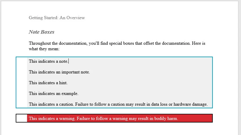 <p>Throughout the documentation, you'll find special boxes that offset