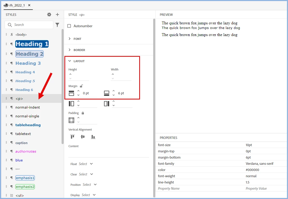how do i set before and after paragraph spacing in Robohelp 2022