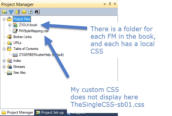 2) Also note that Project Manager does not display my custom CSS, even though it is in the same location as RHStyleMapping.css and referenced in the Properties dialog box.