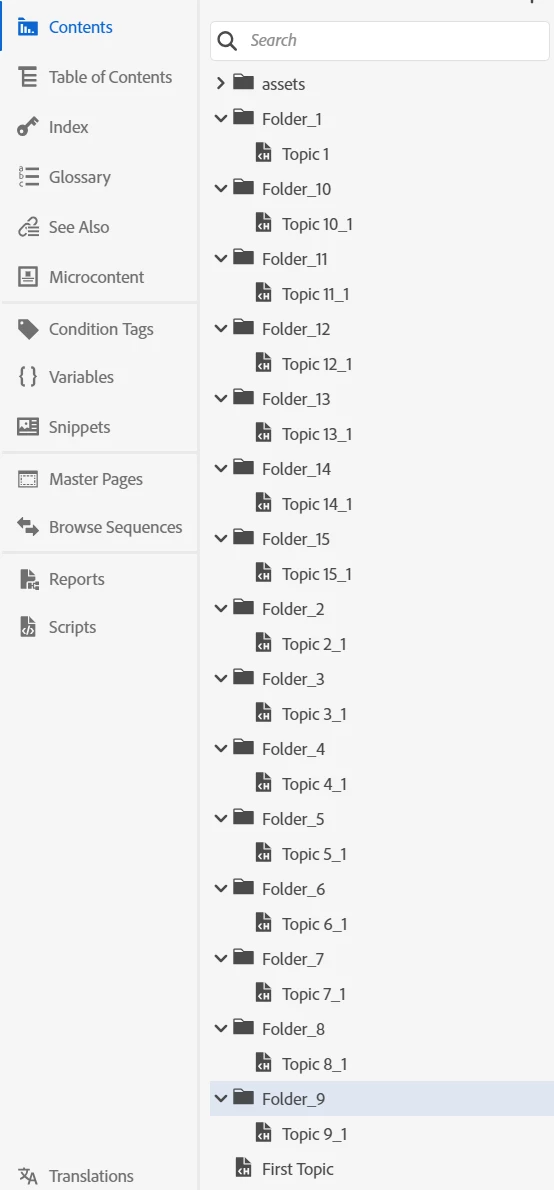 Added seven (7) folders for various company software modules. Ran into a problem when I added the 8th folder for a General Ledger Word document and started adding topics to that folder...the "folder" seemed to be a section. I could not view the the two topics I added from the Author>Contents panel. When I located the files in Explorer, I could view the General Ledger folder and the two topics that were added. Is the way RH is meant to work?