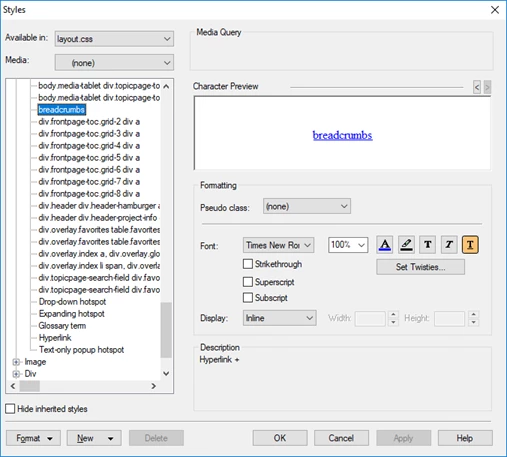 How to change font size of breadcrumbs in Indigo HTML5 layout