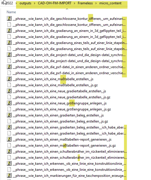 There are two errors: names that are too long and special characters. Is there a way to rename the phrases? Or how can I name microcontent using the group name + a sequential number? How do you solve this?