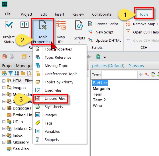 I use a lot of image files via DHTML. How can I find and delete unused image files in a RoboHelp project?
