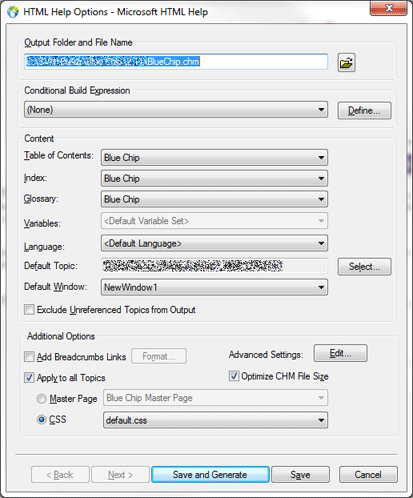 - Within the Properties window, select the Appearance tab again. Notice that the selected style sheet now reads default.css*, despite having just specified that we wanted no style sheet selected. The * here indicates that the default.css style is being applied, but indirectly, via the Master Page we applied to all the topics.