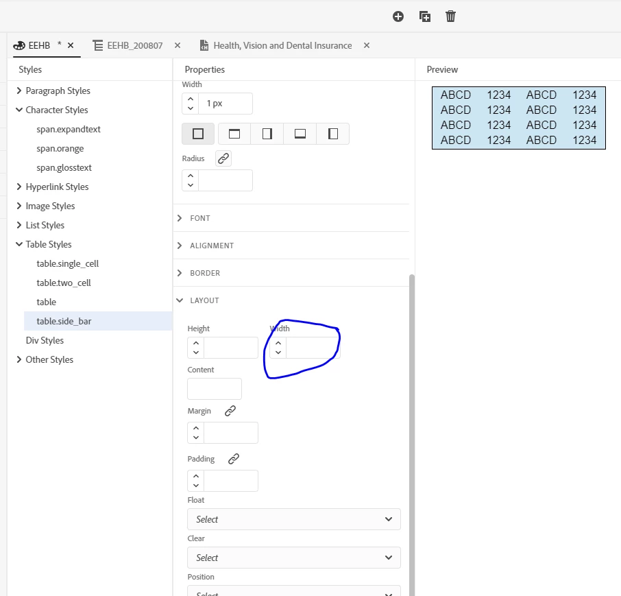 - In Properties > Styles select that table.