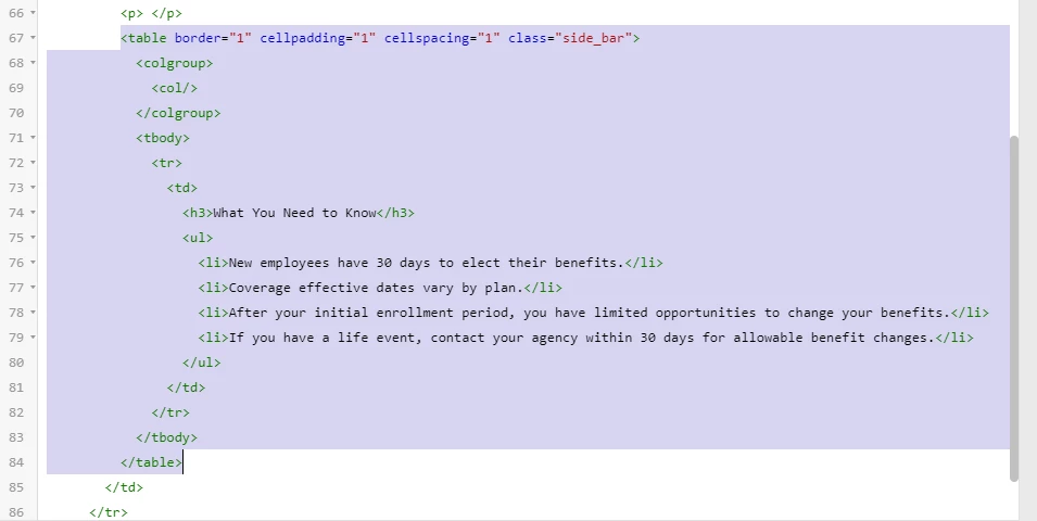 - On a fresh line and not within another table, go to the toolbar and insert a table with the required number of rows and columns.
