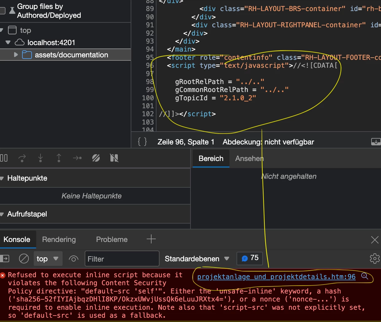 The browser (e.g. Edge) complains about inline scripts in the export HTM-files. Is there ANY way to generate security-compliant HTM files NOT containing any inline script?