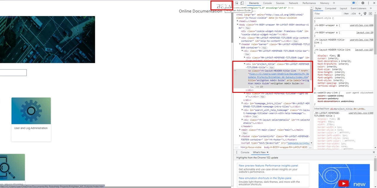 I am currently working on Robohelp version 2020.6.76 and generated a frameless output of our online document only to find out there seems to be some text (Hyperlink to Index .html) that is being displayed on top of an image in the Skin Home Page in the top right-hand corner.