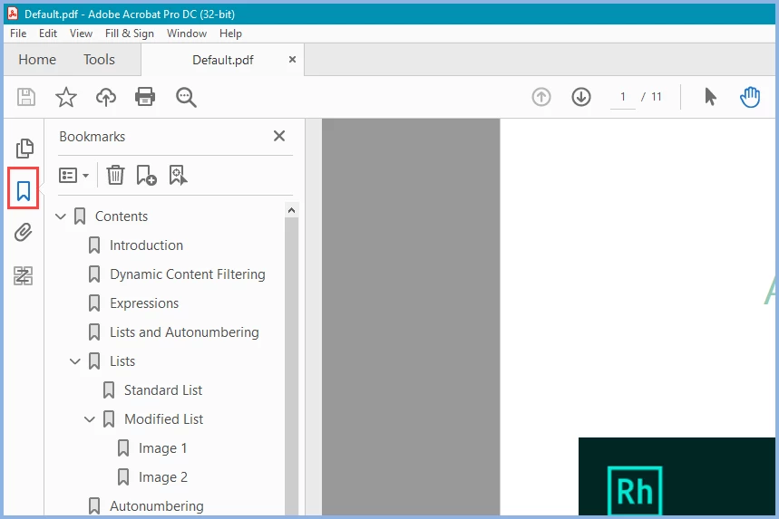 I have succesfully created a PDF of my Robohelp project, is there anyway I can create an index (similar to the table of contents)? I can, within Adobe view the bookmarks, but this isn't an index.