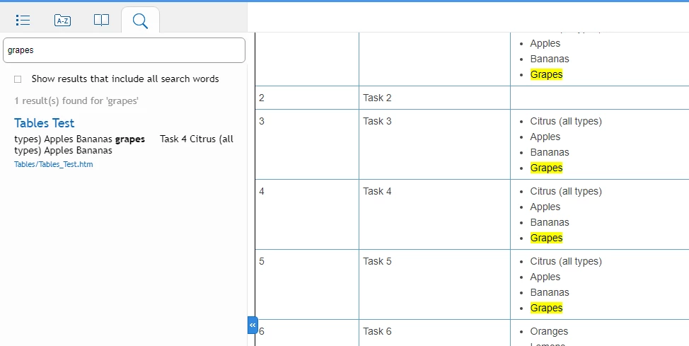 Is the search function normal when put a keyword, only 1 title found with the document name on the left pane, on the right pane, there are many highlighted keyword found?