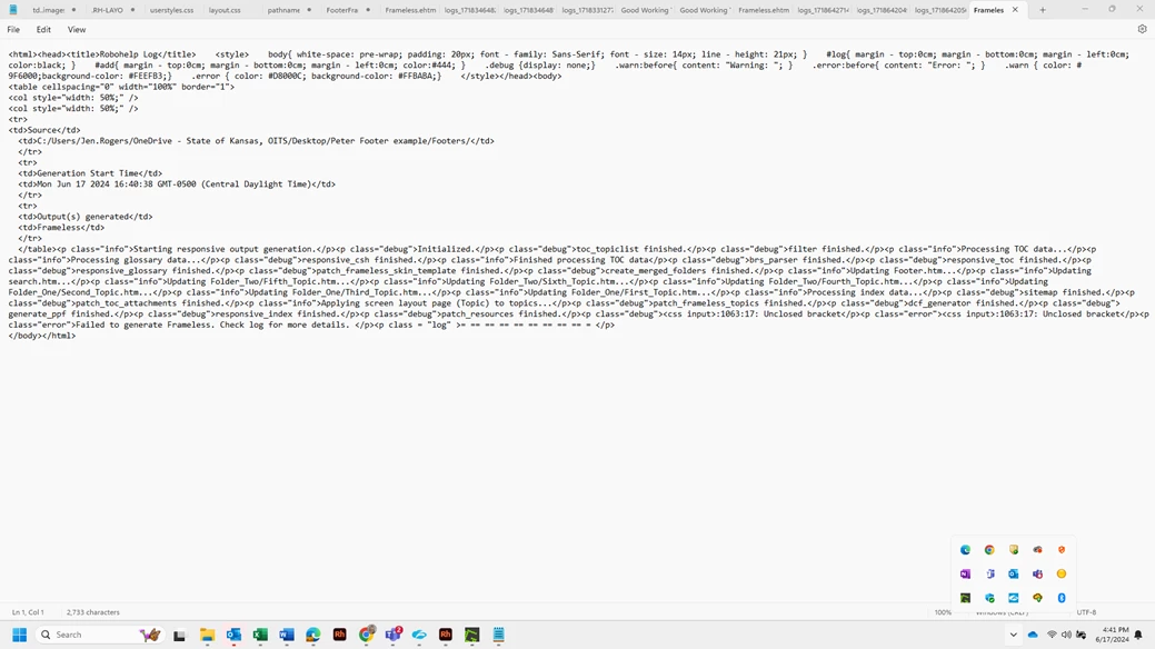 Last week I was working on my project template when my screen locked up for whatever reason. I couldn't get anything to respond in Robohelp. I eventually had to power off my computer and when I logged back in, all of my content was still there, but when I generateed and viewed output, all of my changes to the template were gone. I have a copy of my project, althought a little outdated, it still shows all of the changes that I have made to my template using the template editor. I have a couple of questions: