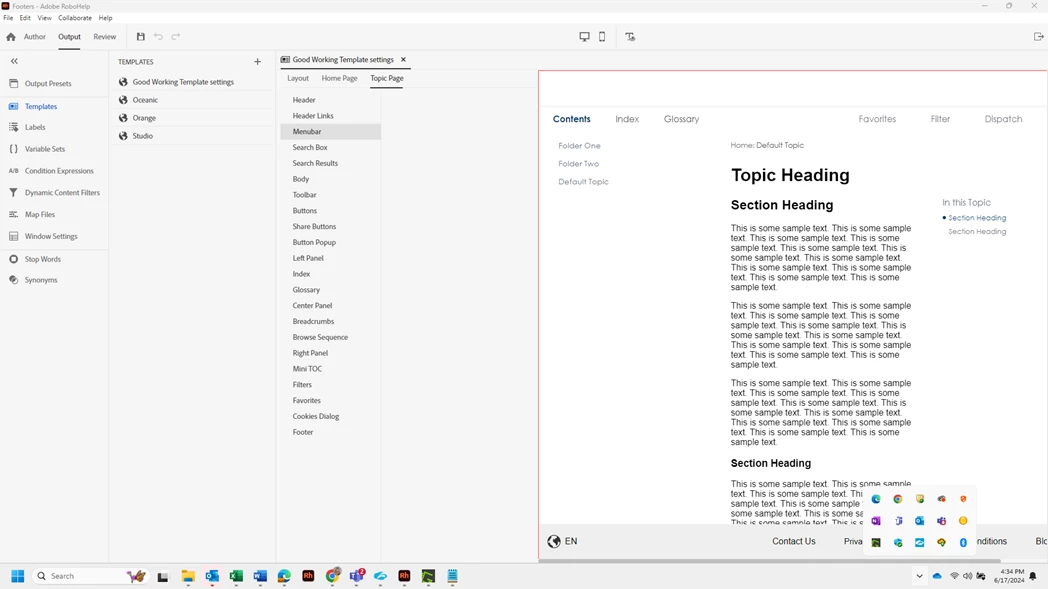 Import template from one save project into another saved project Robohelp 2022 3.93