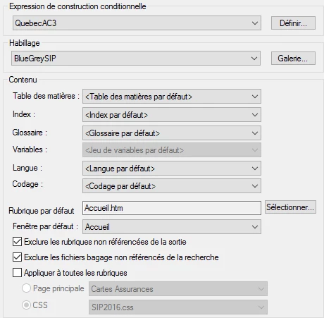 We have one RoboHelp projects, one in french and one in English. For each projects, we have 6 different outputs (SSL) (contents specific for 3 different provinces and 2 server Live / Developpement). We choosed the the Blue Calibri Skin, we have RoboHelp Server 9,0,1 and every author have the same and last version of Robo client.