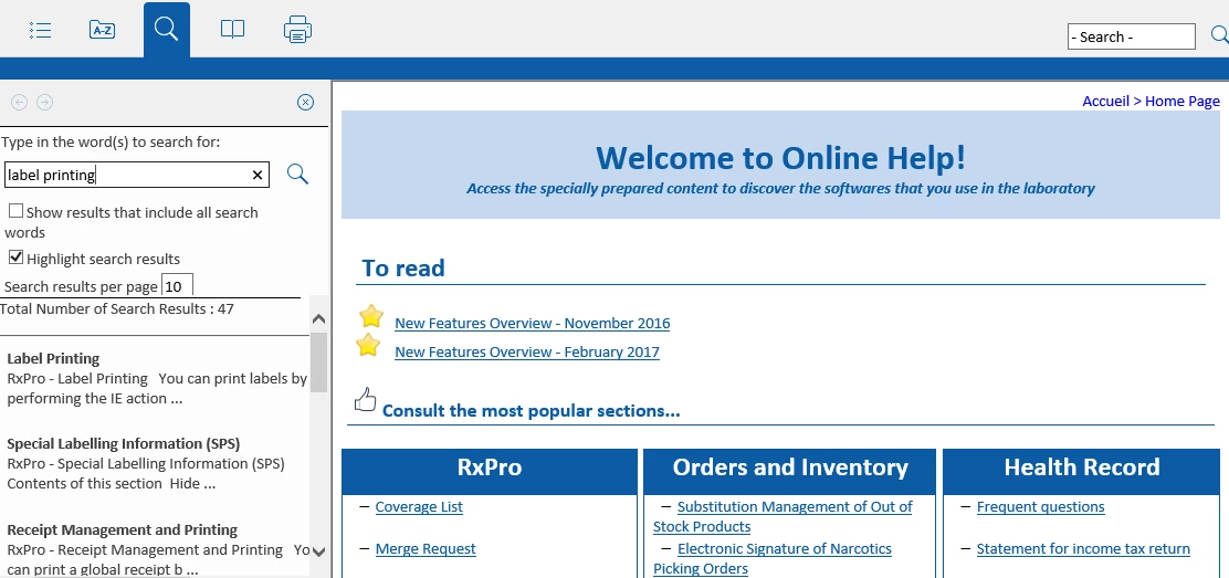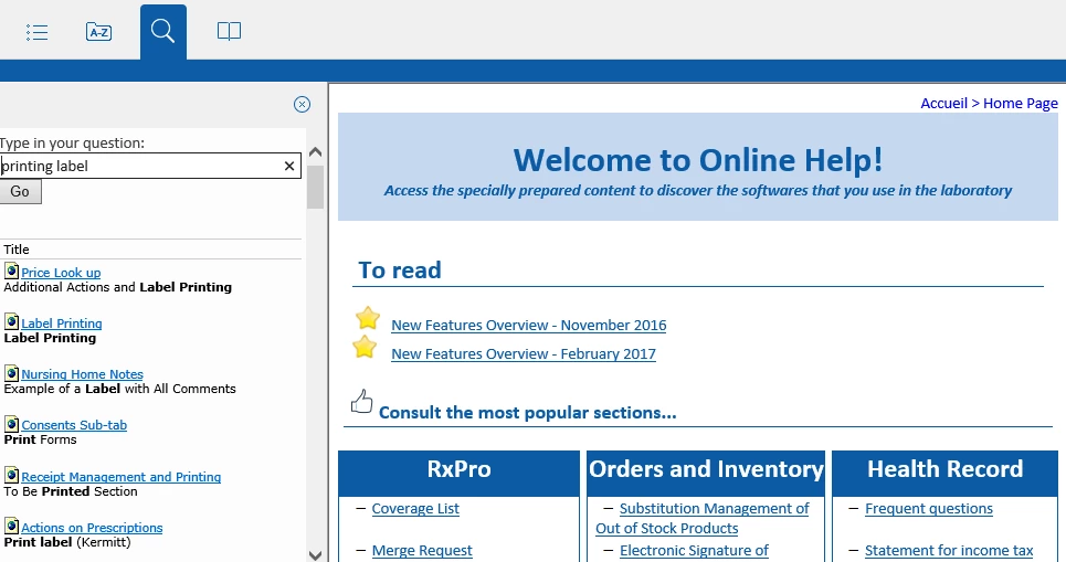 - Indications in the Search tools are not the same (Type in your question VS Type in the word(s) to search for)
