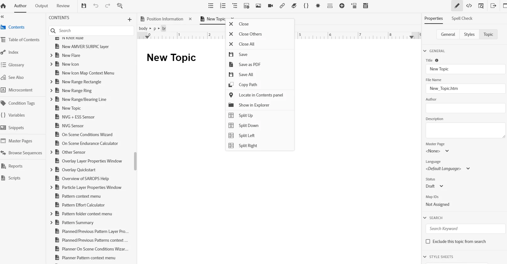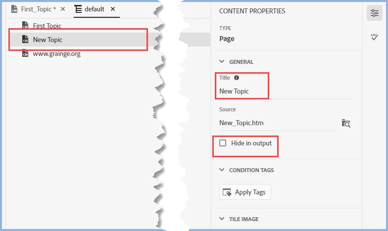 ... and when the topic is in the TOC you click on it to see the Properties that I have shown.