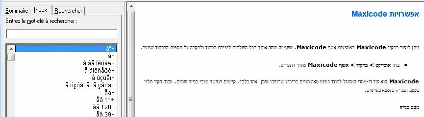 Index is not displayed correctly in hebrew