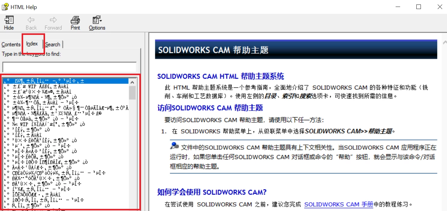 Index tab of Master chm file containing multiple merged Projects(in Chinese) contains garbage values