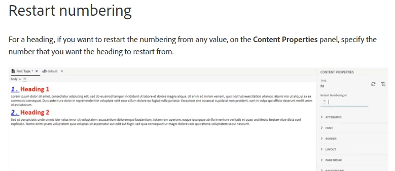 Do not have the option to reset the number value in an auto-numbered paragraph. Option appears to be missing in the content properties.