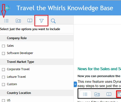Or the other enhanced way - if we select filters say - Sales, then the Sales related topics should be displayed (rather expanded below it - just like Expanding Text).