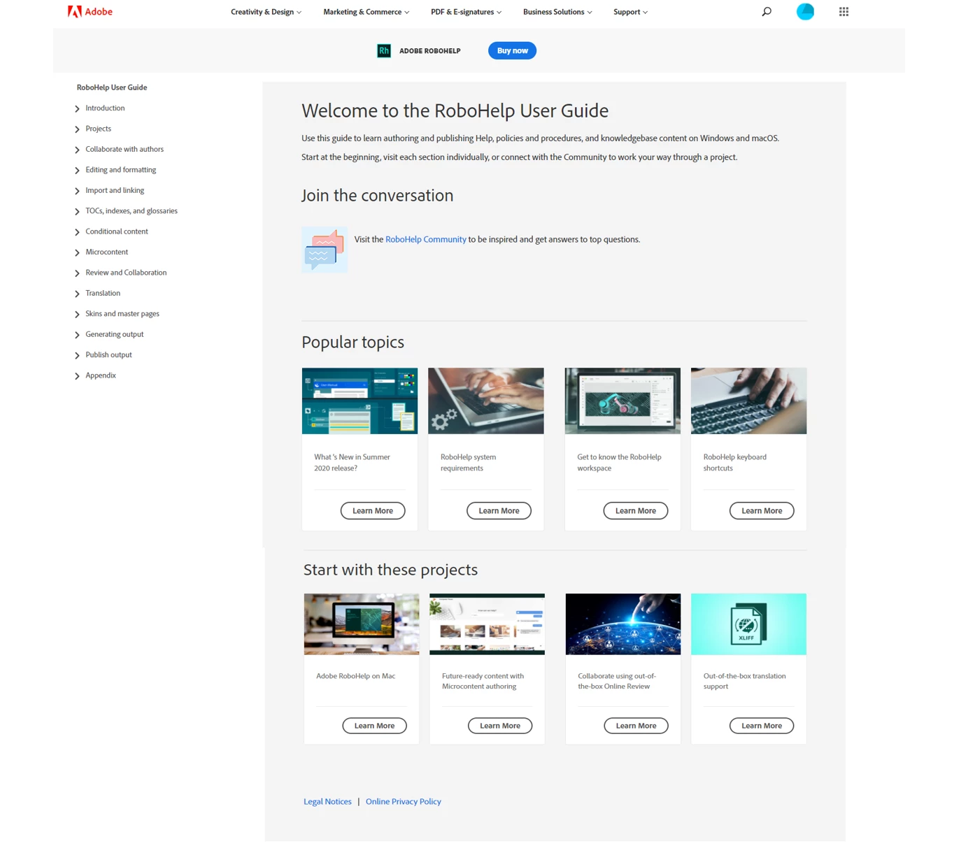 Explore the site to learn more about our full spectrum for creating online documentation and help systems for desktop and web-based applications. You are only one click away from joining Adobe Community to be inspired and get answers to top questions.