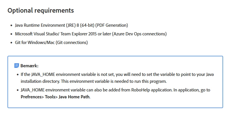 I am trying to publish a PDF from RoboHelp Version 2022.0.346, but it seems it needs Java 1.8(64-bit) to work.