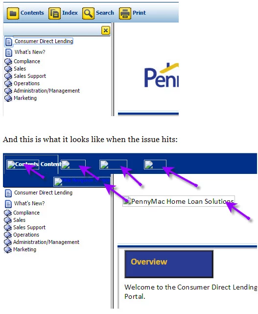 I'm going to try removing RH 2015 from my system and re-installing. In the meantime, here's a screenshot of the issue. Any insight would be appreciated. Client is using both IE and Chrome to view the WebHelp (this has been going on for the past year) without issue. -- Thanks. Anet