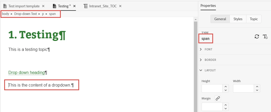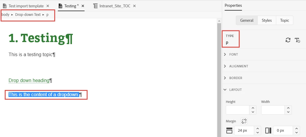 It seems that inside a Drop-down text “box”, top and bottom margins do not work. I position my cursor at the beginning of the paragraph, insert the value (ex.: 6 pt for bottom or top, depending) and the paragraph stays the same. Left margin is possible (ex.: 14 pt).