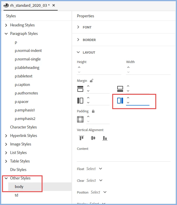 Good morning, I am writing to ask you how I can change the edges, specifically increase the right edges, of the topic. I tried using the Master Page but I failed.