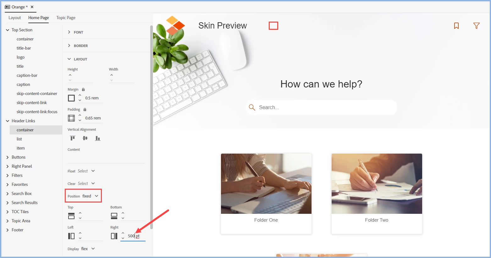 Moving Orange Skin Header Links and Buttons to the Left