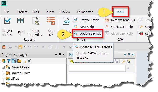 We recently upgraded from RH 10 to RH 2015. We know one dhtml drop-down text issue existed before the upgrade, and the upgrade did not resolve it. We have another more serious issue now. We are not certain it began with the upgrade, but we detected it after having converted our projects to RH 2015 and republishing them. I'm listing both of them here in case they are connected.