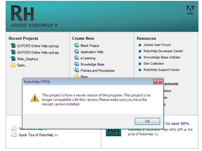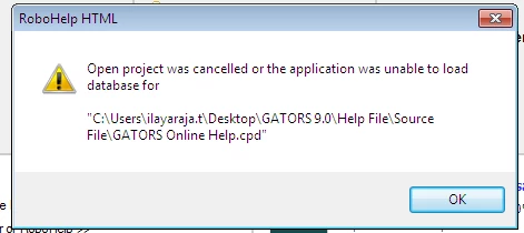 I use RoboHelp 8.0.0.203. When i opened my project (.cpd) the TOC is full of Broken Links. Then in opened .xpj file. The following error messages were displayed. I have posted the screen shots for your assistance. Kindly help me out of this.