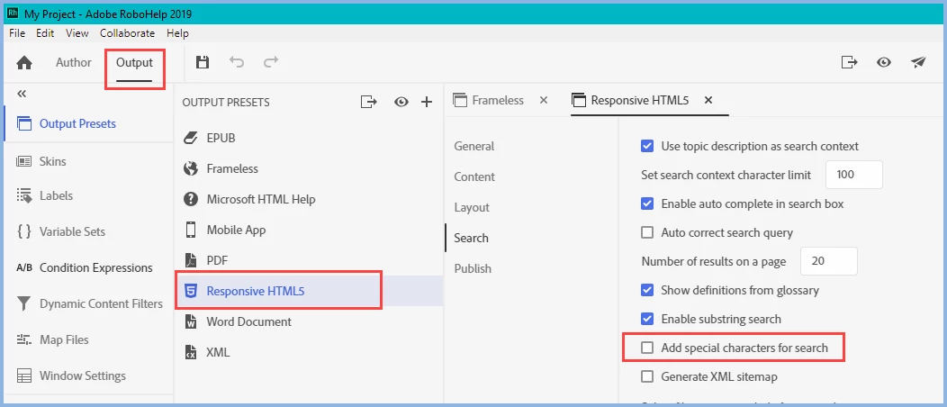 Yesterday, I downloaded a trial version of RH 2019 to test a few things, including this bug and another bug I filed. So, I upgraded my RH 2017 Responsive HTML project to RH 2019 Classic, and regnerated the doc. This bug does not seem to be fixed! However, the text of the email suggested I needed to define some parameters.