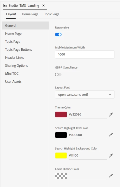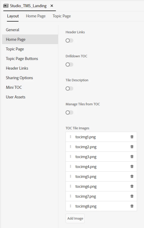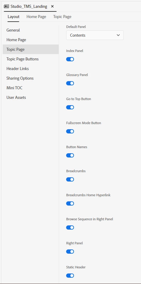I set up TOC tiles for each. When the user clicks the TOC tile, the Topic page is supposed to open with only the topics I’ve tagged for that TOC tile showing in the left panel. I also included a Welcome TOC tile which opens the Topic page with all topics included in the left panel.