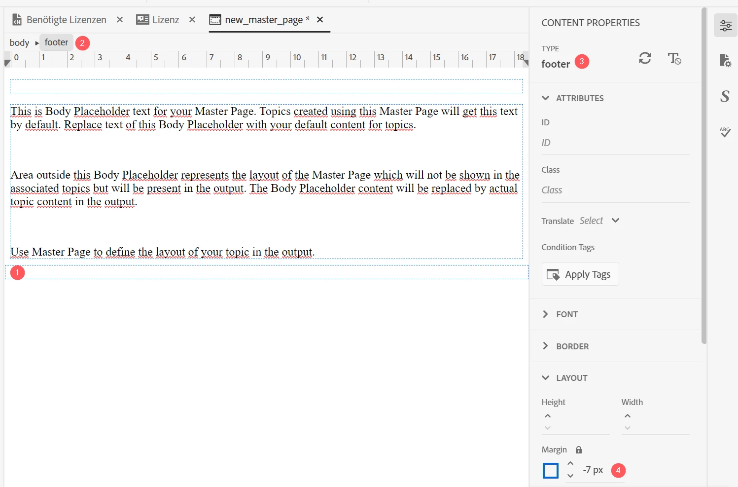 I am setting up a page layout for my PDF output. RH presents me with a predefined A4 sheet with margins. While I need this for my body and my header, I do not want any margins for my footer, as I need to put in an image there which is supposed to go from left to right with no margin on either side. Anybody got an idea how I might be able to do this?