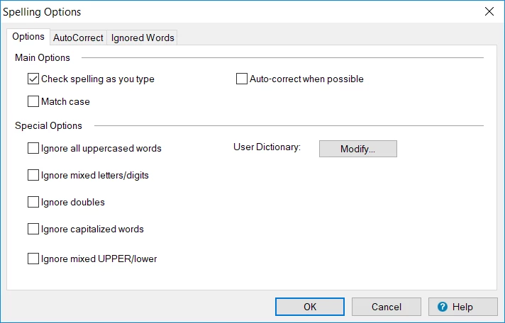 I even tried changing the dictionary to another language (apparently I spell awesomely in French because there were no mistakes. The language I write in is English by the way).