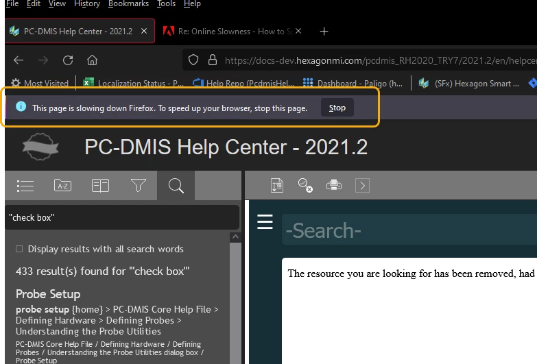 We are experiencing some slow speeds when loading in the merged help site from our online webserver. One user who has 20 Mbps download speeds, it took him about 11-12 seconds to load the site, and about 19 seconds before they get search results. (I'm sending out a survey in our company to get broader results, but I've seen slow loading and search speeds results from my computer as well and I have about 80 Mbps download speeds.)