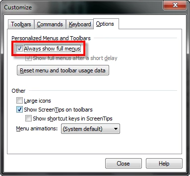 Option Missing from File Menu