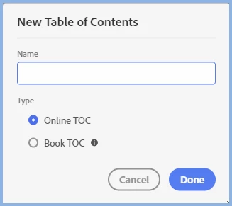 4. I updated RH to version 14.0.14. Same problems. But worse : it is no more possible to create a TOC. When clicking on the + sign, no screen to enter the name of the TOC, only the type (Online, book, ..) and then nothing.