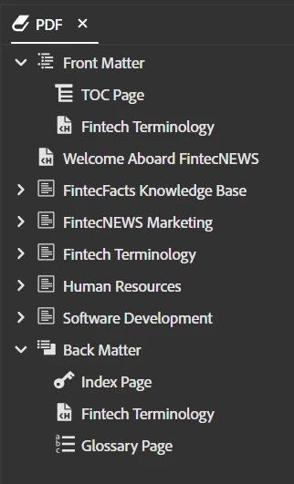 This image is with the Front and Back Matter topics expanded.